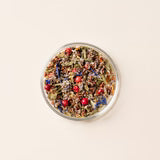 Meersalz, Paprikagranulat, Tomatengranulat, Schwarzkümmel, roter Pfeffer, Schnittlauch, Sesam, Bohnenkraut, Zitronenschale, Kornblumen