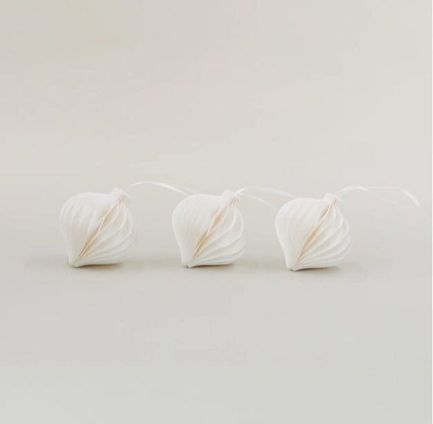 Das zeitlose Design in Naturweiß fügt sich mühelos in jede Stilrichtung ein – von klassisch über skandinavisch bis hin zu minimalistisch modern. Jahr für Jahr wiederverwendbar sind diese Papieranhänger eine nachhaltige, stilvolle Alternative zu herkömmlichen Christbaumkugeln.