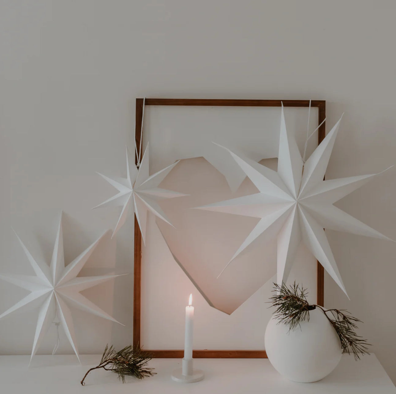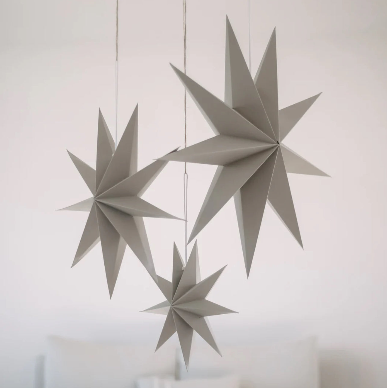 Entdecke unser Set aus 3 ausfaltbaren weißen Papiersternen. Dekoriere die Sterne im Fenster, an der Wand oder frei schwebend im Raum. Die Sterne werden mit einem Zugband und Kordelstopper geschlossen und können dadurch nach Weihnachten ganz leicht und platzsparend wieder zusammengefaltet und aufbewahrt werden. So können sie jedes Jahr aufs Neue dekoriert und wiederverwendet werden.