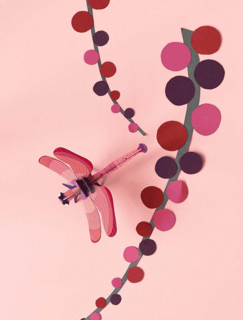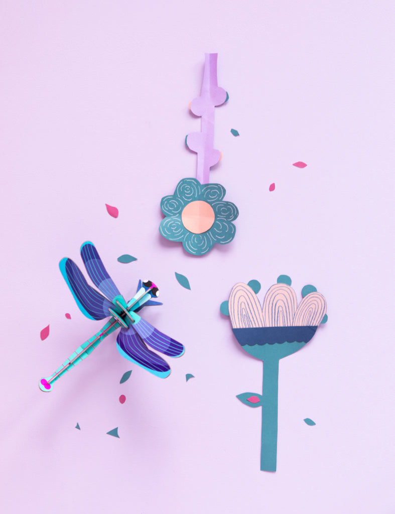 Größe, aufgestellt Libelle: 17x8x16 cm / 6.7×3.1×6.3“ 4 x B6 Blätter mit 17 Einzelteile zum Herausdrucken und Zusammenstecken